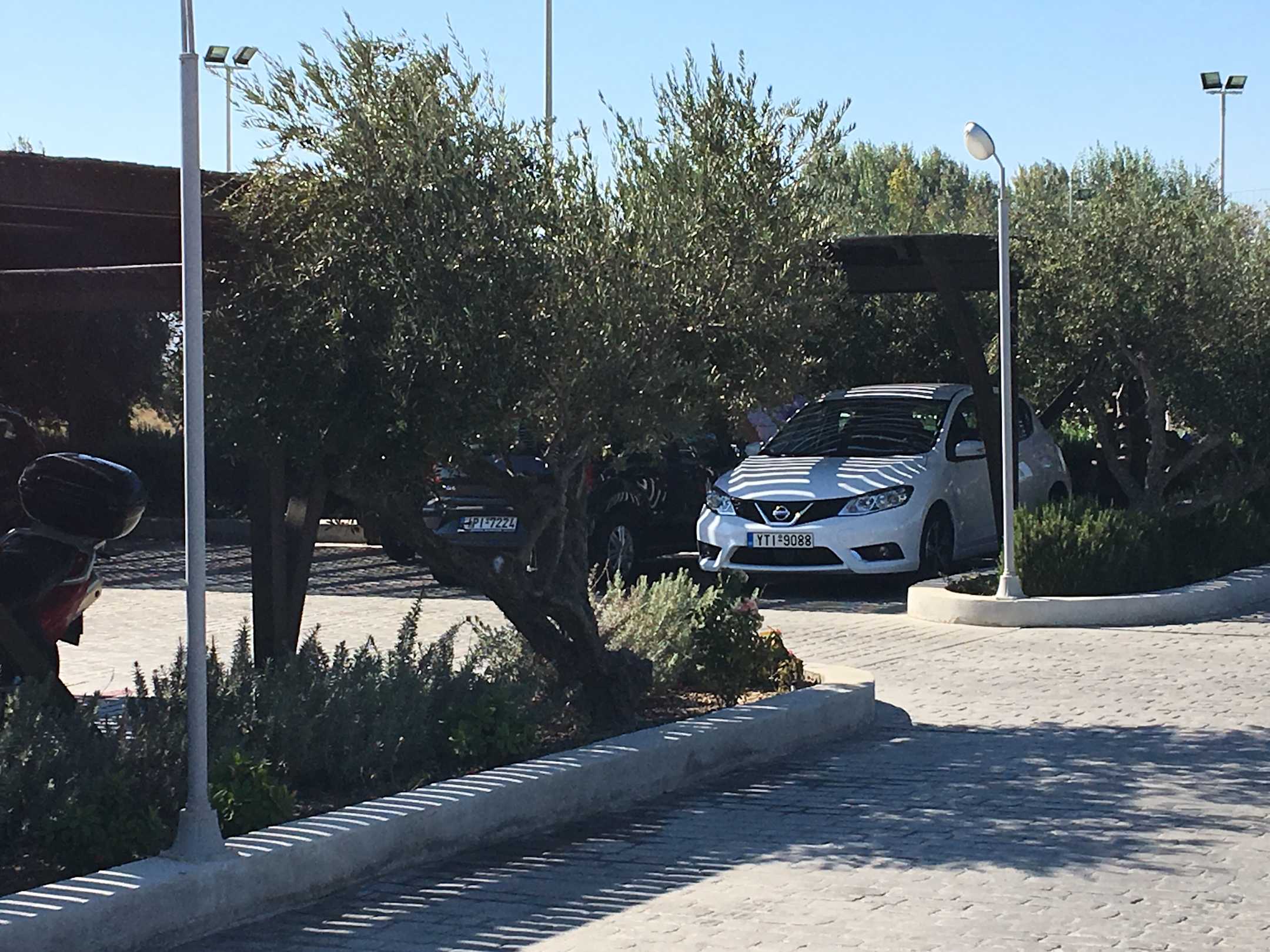 Überdachte Parkplätze am Hotel