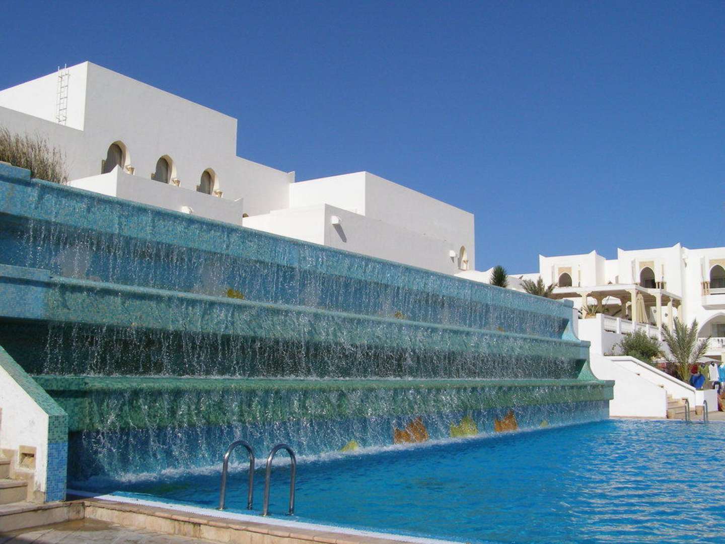 plätschernder Wasserfall am Pool