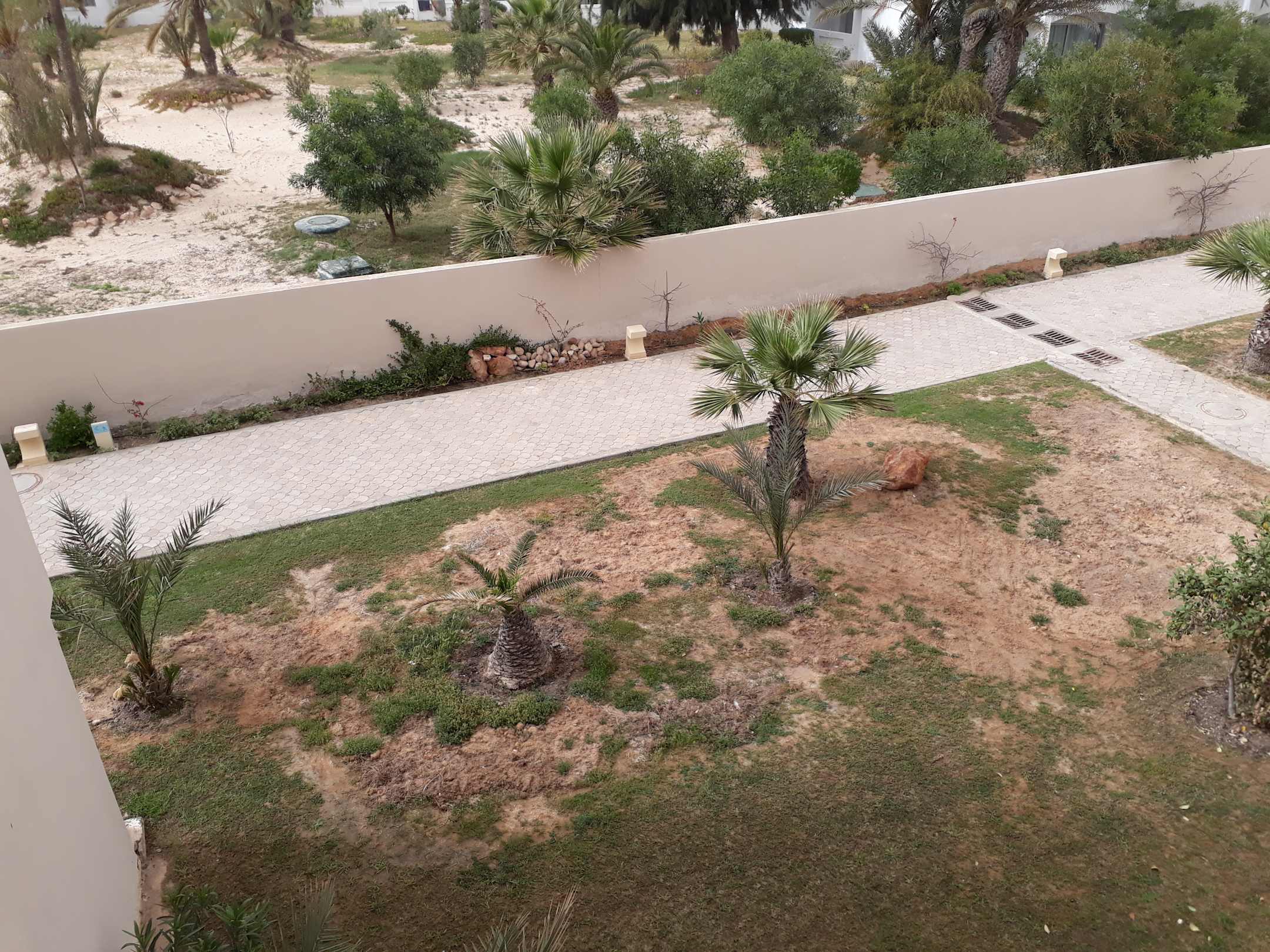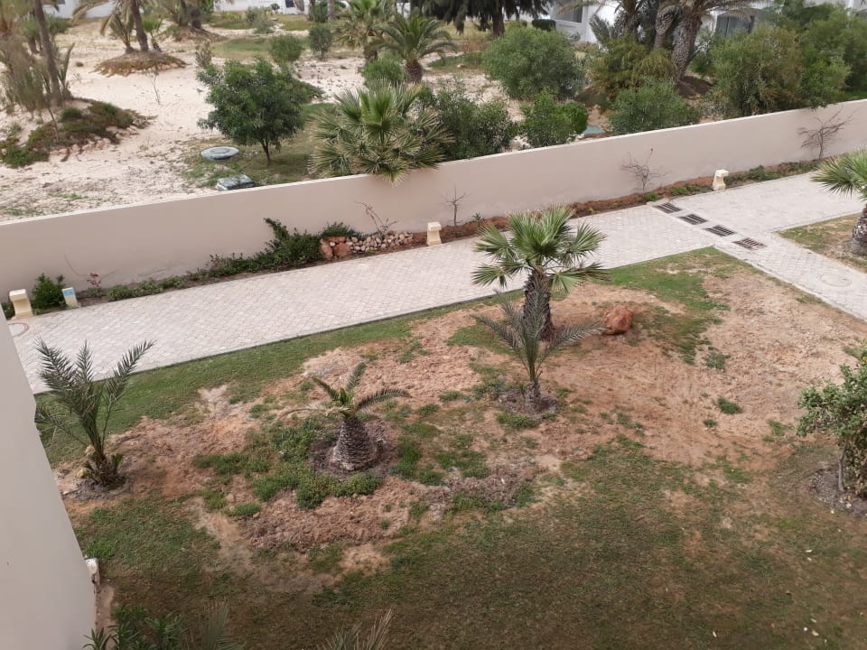 Das war der Ausblick von Zimmer 374, weder Morgen-, Mittag- und Abendsonne, mit Blick zum ungepflegten Garten und laute Ventilatorgeräusche vom Nachbarhotel, unzumutbar!!!