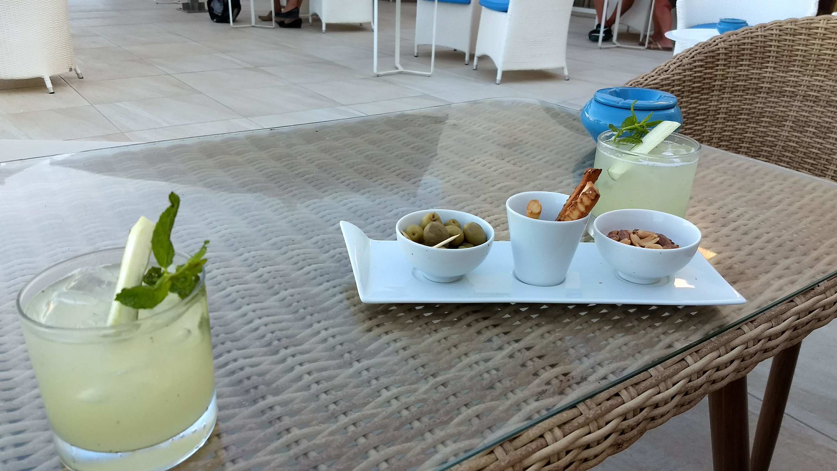 Auf der Bar-Terrasse ein Apperitiv (Cucumber-Smash-Gin-Tonic, lecker)