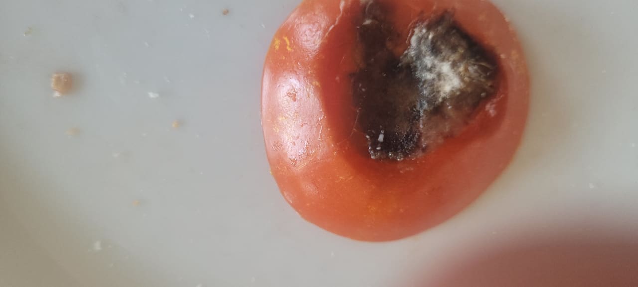 vergammelte Tomatenscheibe, sollte man beim Schneiden erkennen.