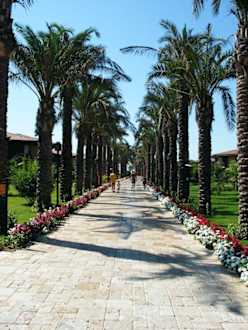 GartenanlageWeg von zur Rezeption vom Pool, Restaurant und Strand