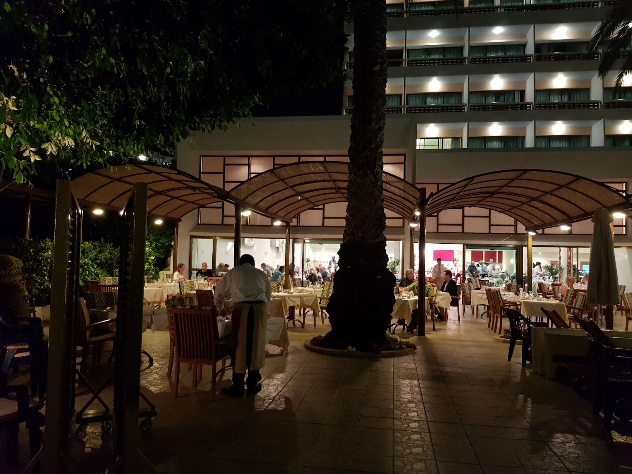 bei der sommerlichen Wärme speist man vor dem Speisesaal :-) (Blick vom Pool aus)