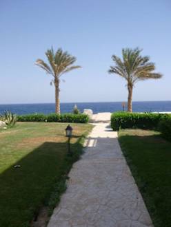 Blick vom Garten aufs Meer