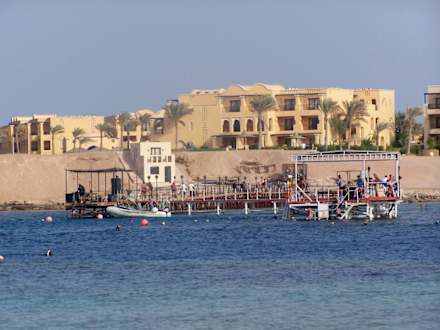 Ausblick vom Coraya Beach auf Iberotel Samaya