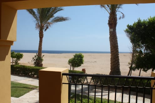 Unser Zimmer mit Terrasse und Meerblick