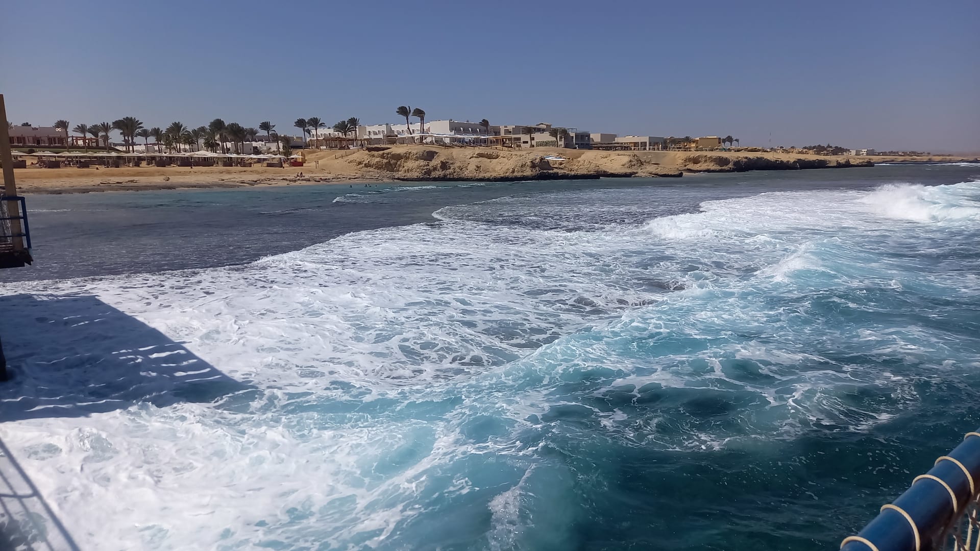 StrandSteg, es gab Haie und Delphine, wir konnten deswegen nicht ins Wasser