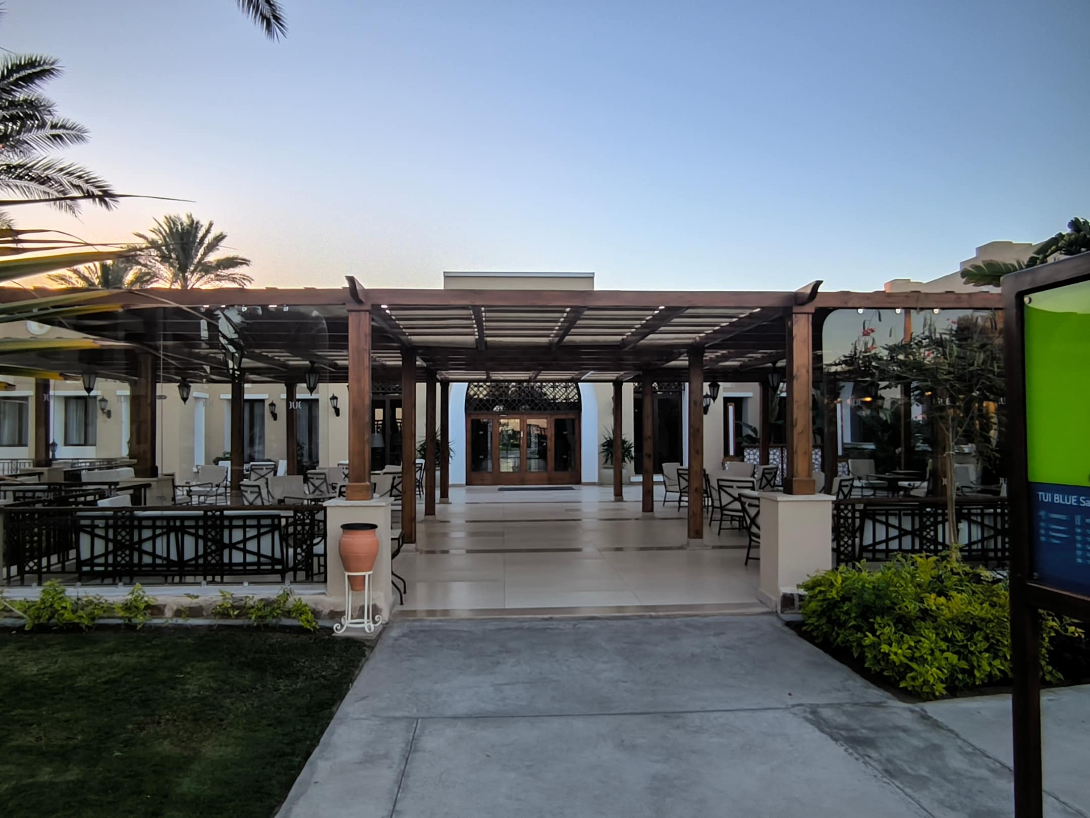 Eingang zur Lobby vom Pool ausgehend.