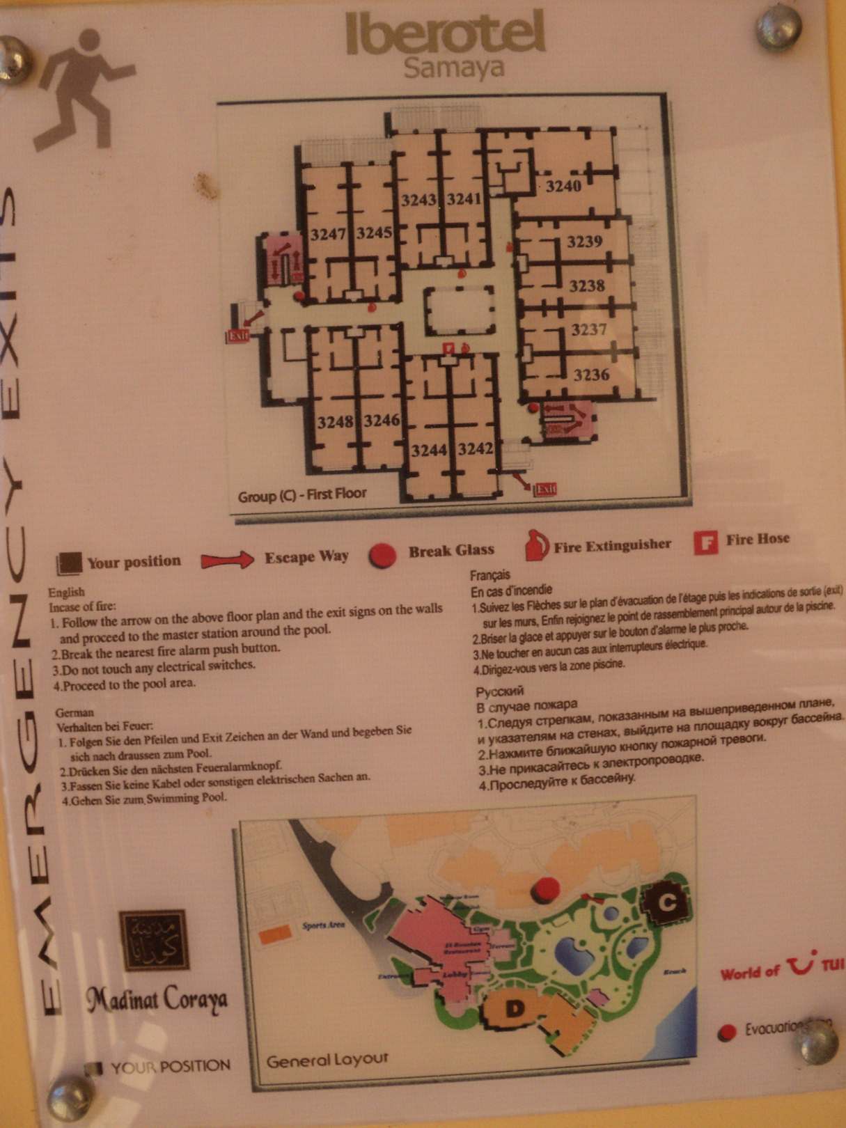 Lageplan (Schild) von den Zimmern vom Gebäude