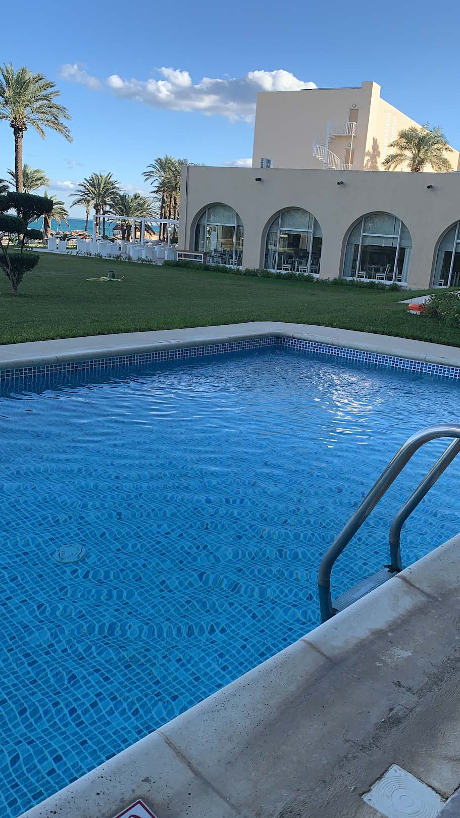 ZimmerPrivat-Pool-Zimmer, Blick auf Garten, Meer und Restaurant