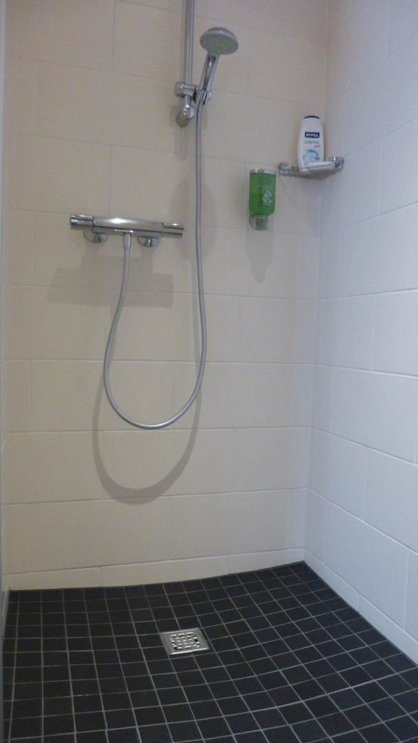 Saubere Dusche und WC getrennt in 2 Räumen.