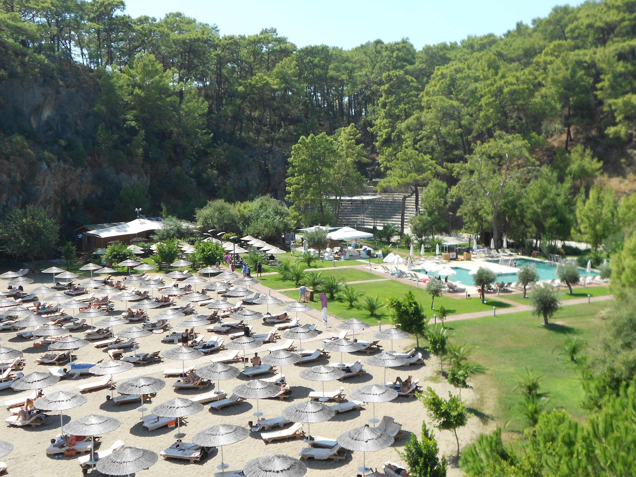 Strand mit Strandrestaurant und Pool