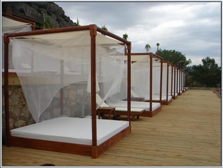 Himmelbettliegen unterhalb des Hauptrestaurants.