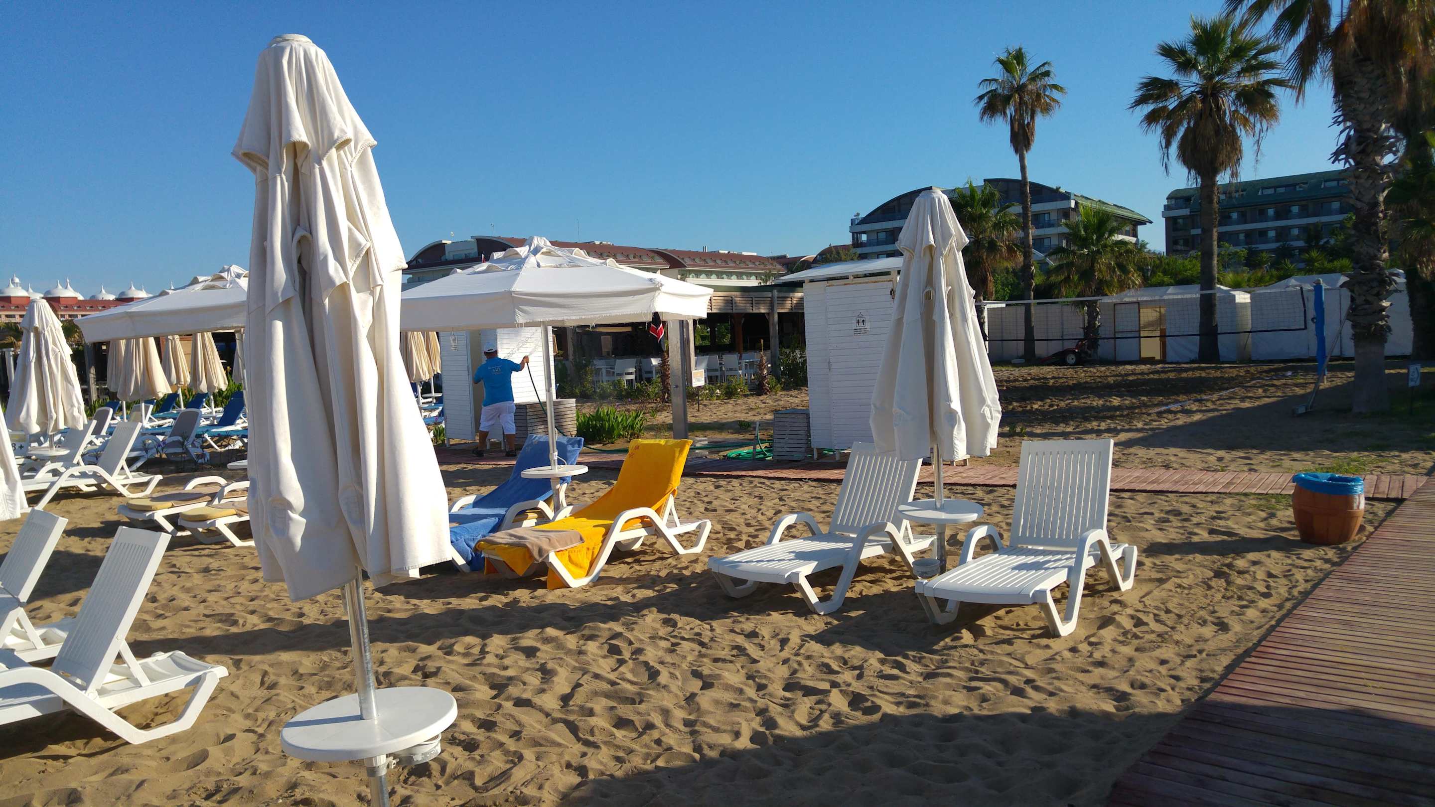 Strand und Umkleidekabinen/Dusche