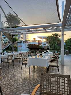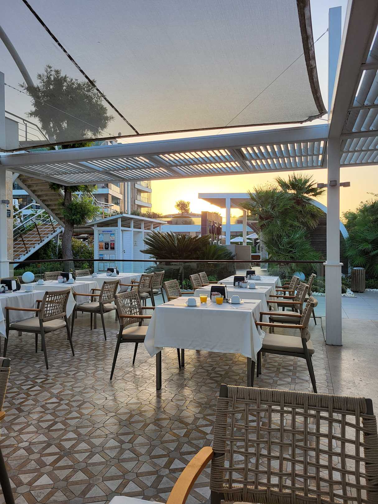 Außenbereich zum Frühstück im Sonnenschein