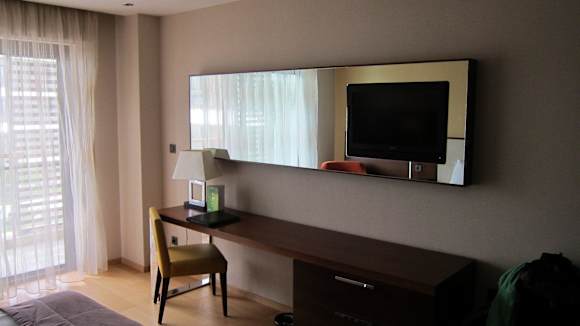 Im ZimmerSchreibtisch und Spiegel mit eingebautem Fernseher