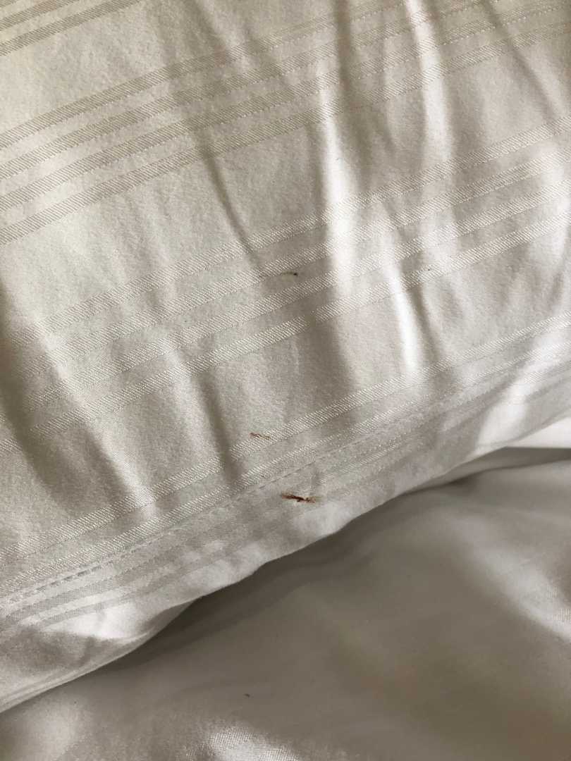 Blutflecken am Kissen breites am ersten Tag.