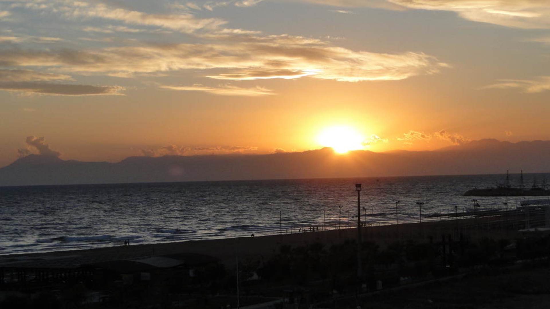Sonne verschwindet hinter dem Gebirge