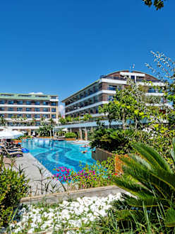 Hotelkomplex und Poolanlage; auf dem Weg in Richtung Strand