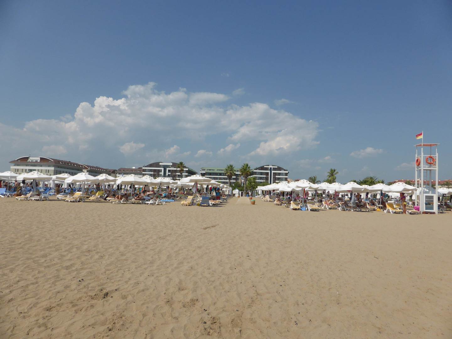 Bild vom Strand auf das Hotel u. Strandabschnitt