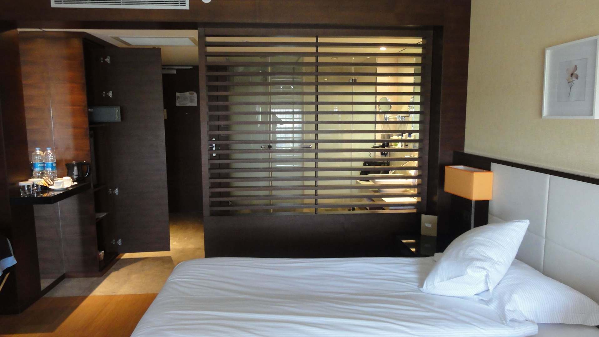 Bett mit Blick zum Naßbereich