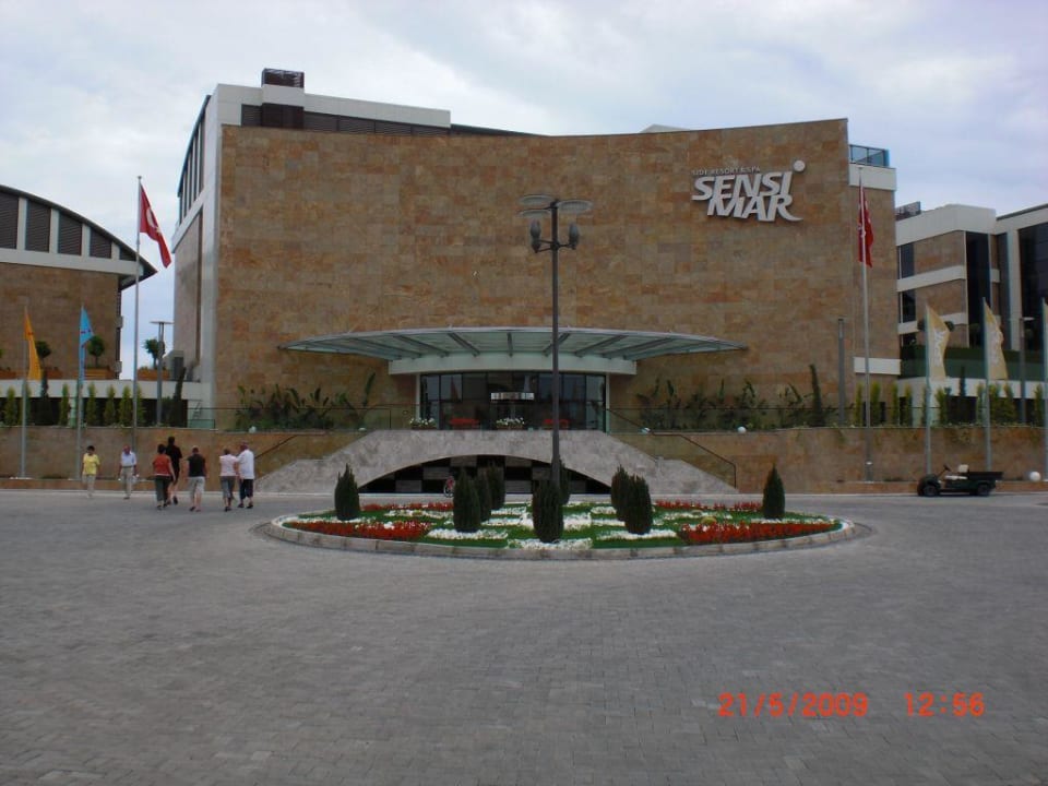 Von der Sraße aufgenommener Hoteleingang