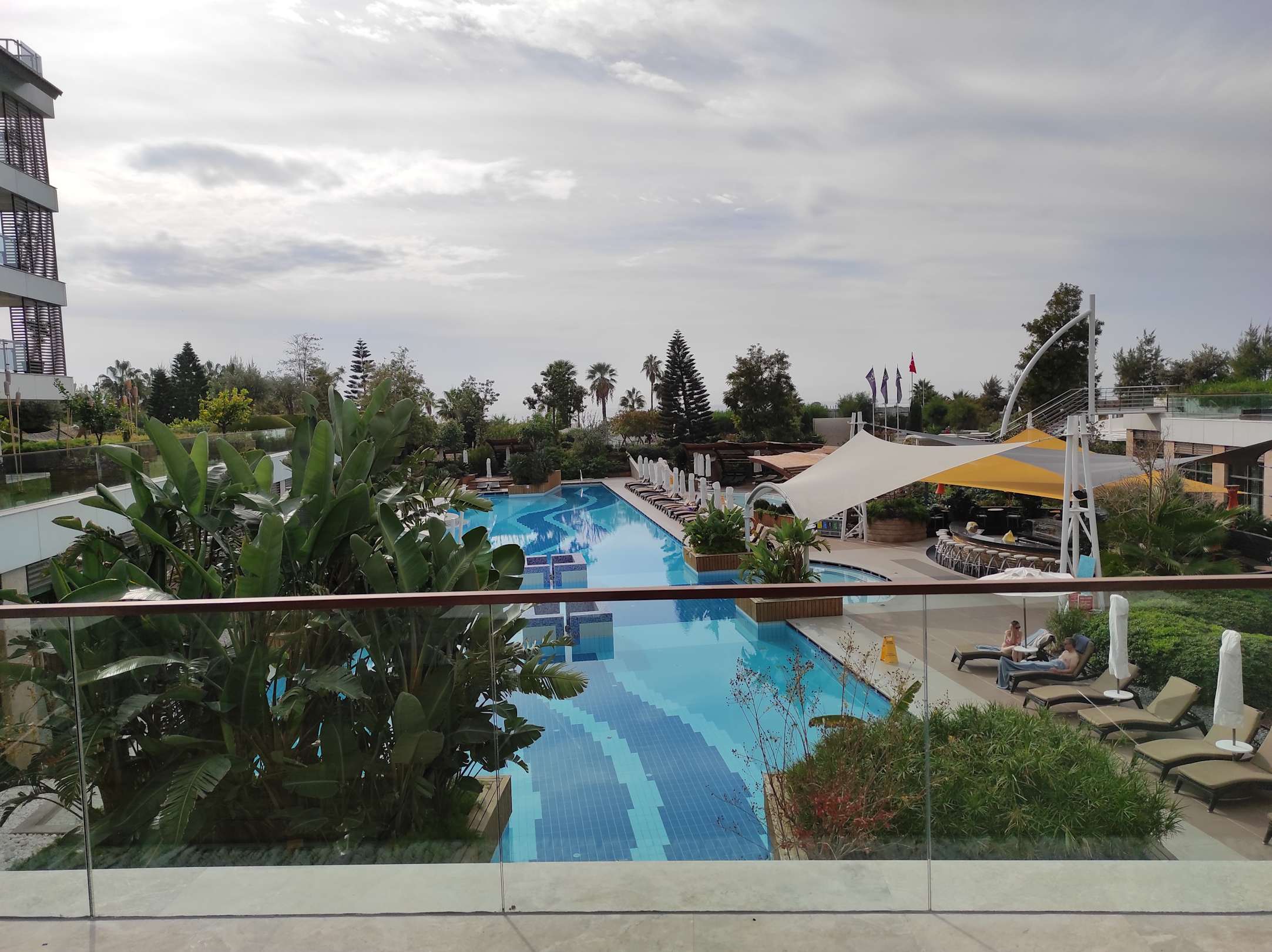 Blick auf Pool und Poolbar