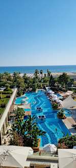 Meerblick-Zimmer, Nr. 3303; Ausblick auf die Poolanlage in Richtung Strand