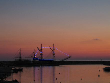 Die Segelschiffe im Hafen beim Sonnenuntergang