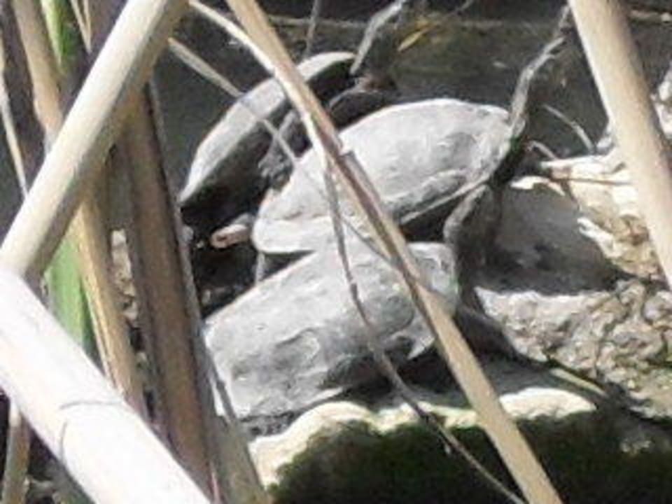 Am Uferrand des Flusses mit der baufälligen Brücke