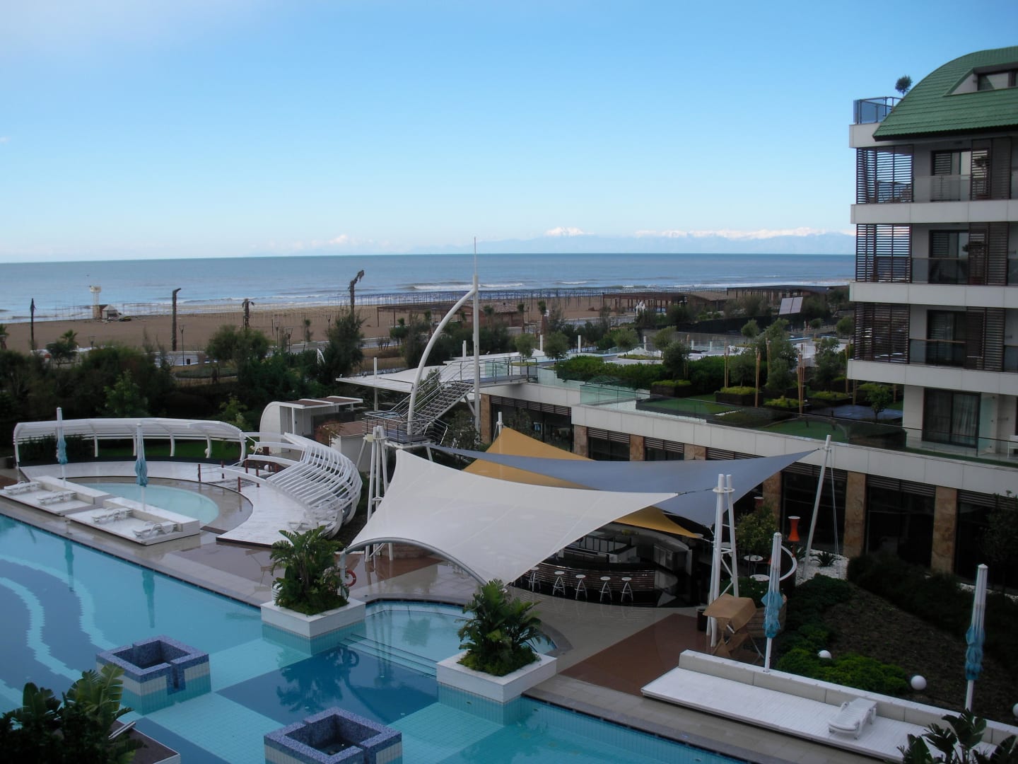 Blick auf Pool und Meer