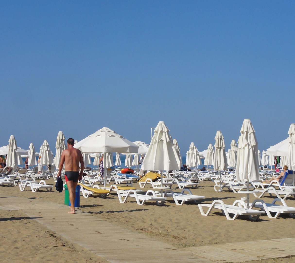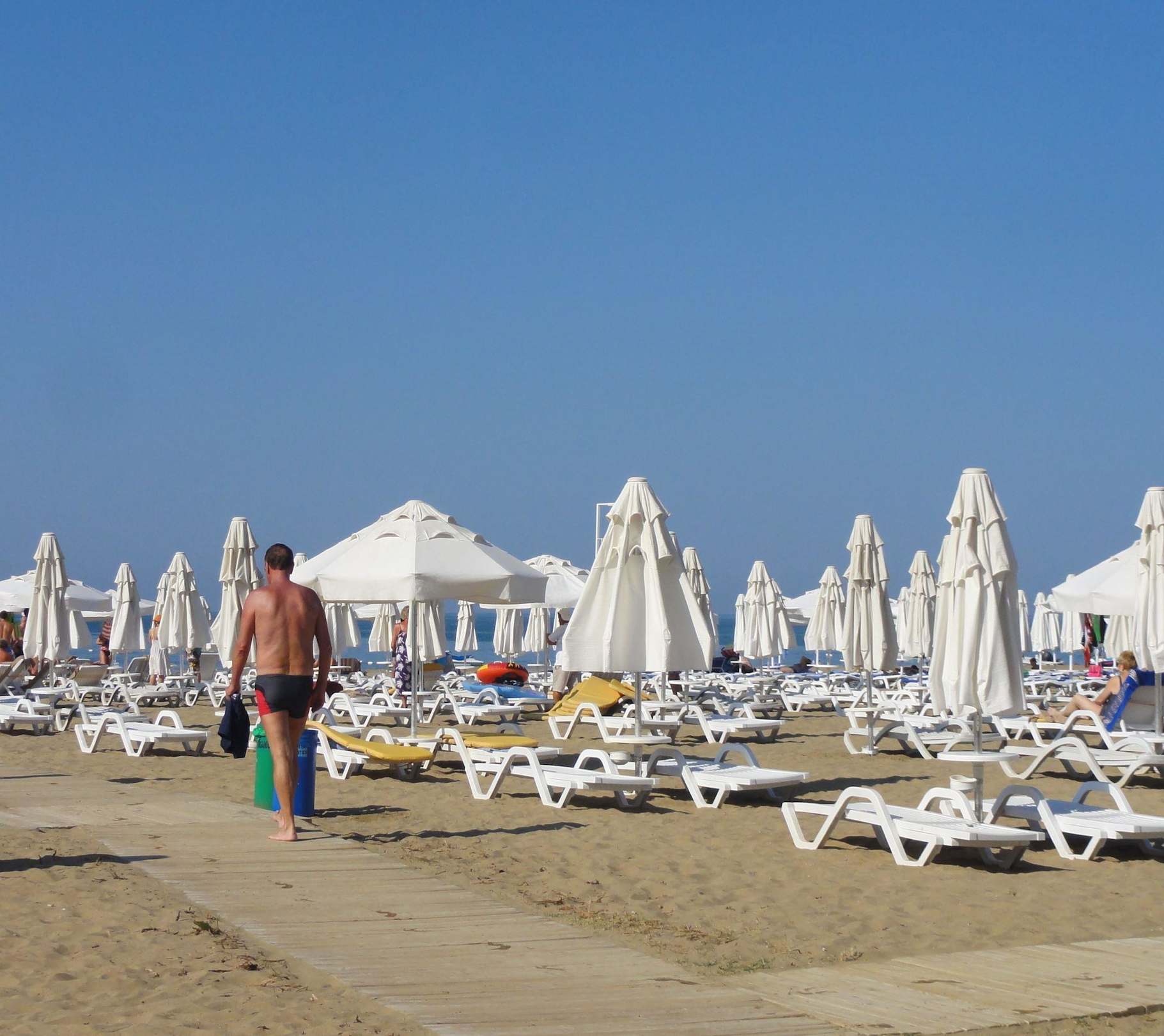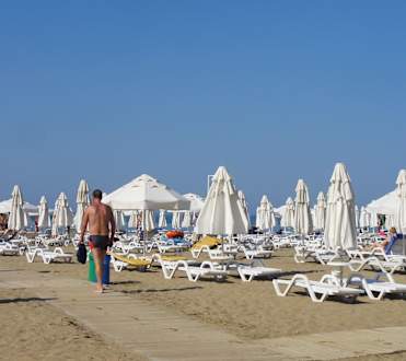 Sonneschirme und Liegen am Strand