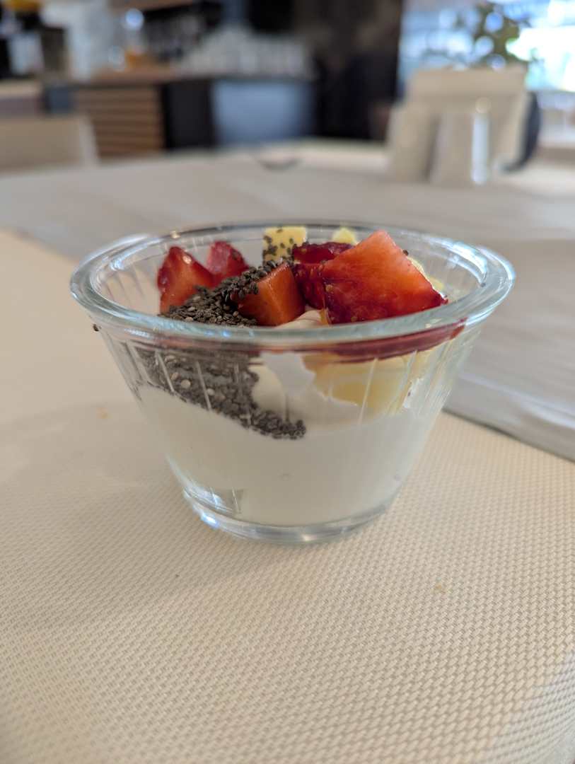 Ein Obstmix mit Joghurt zum Frühstück
