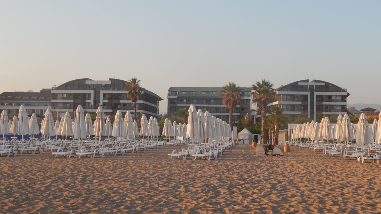 Strandabschnitt des Hotelsdies ist der Strandabschnitt des Hotels (vom Meer aus gesehen, mit Hotel im Hintergrund)