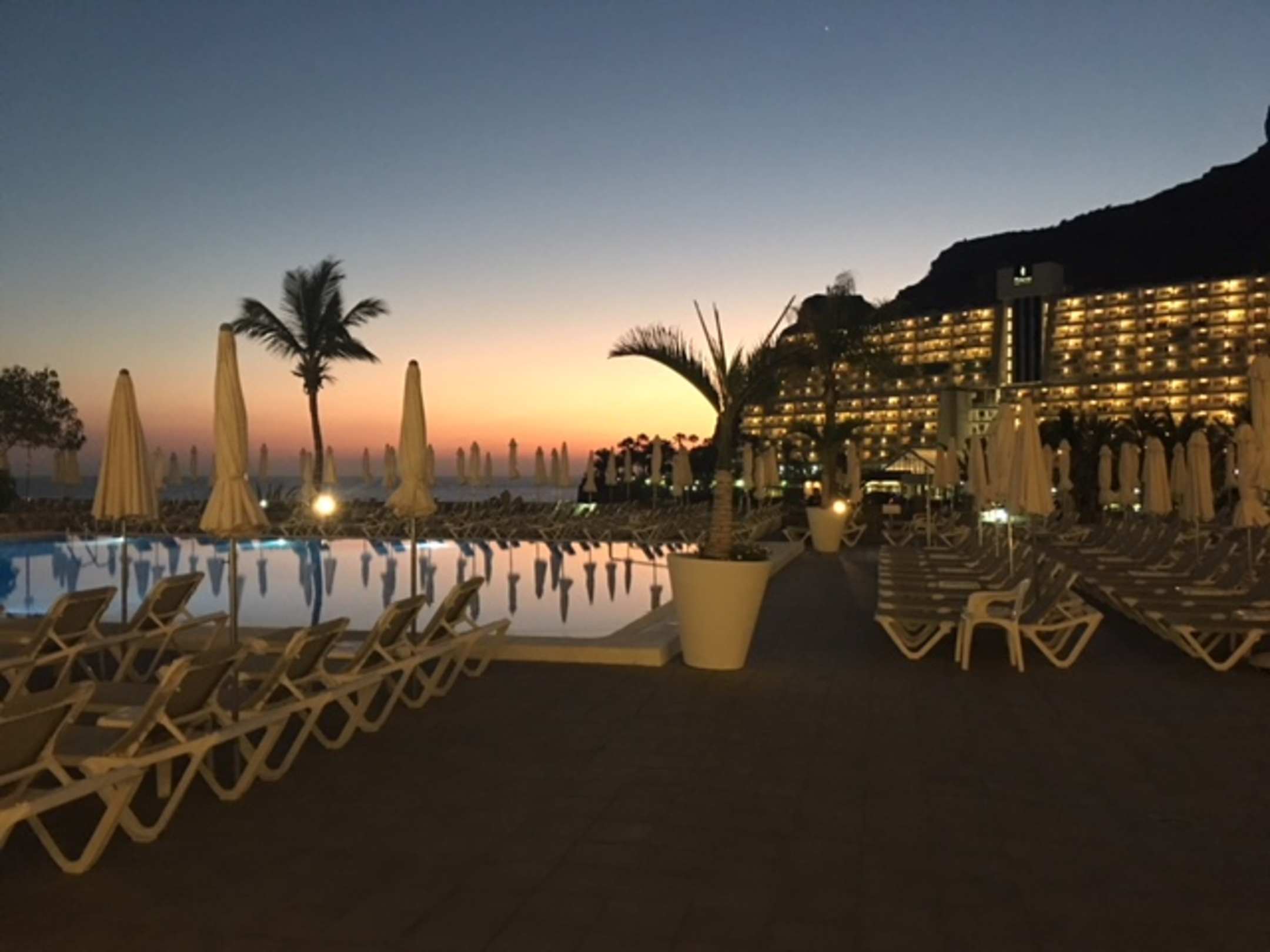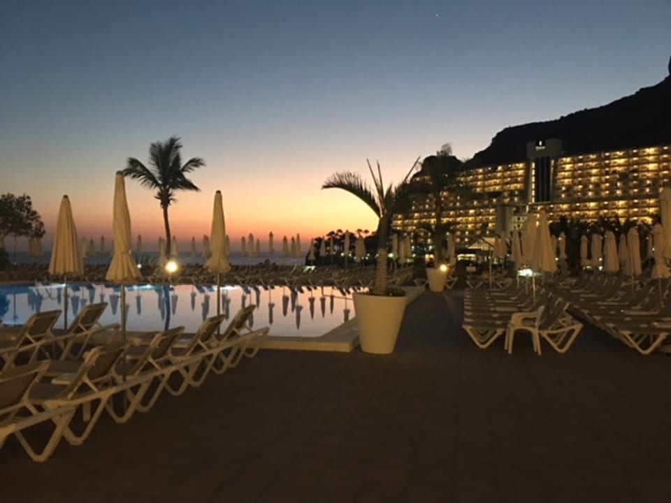 Poolanlage nach Sonnenuntergang