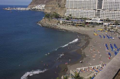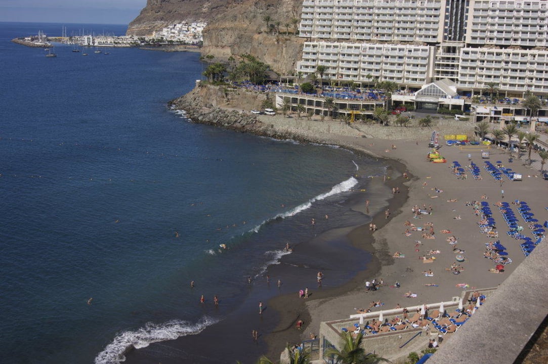 AusblickVopn der 9.Etage mit Ausblick auf den Strand,das Schwesterhotel und dem Jachthafen von Puerto Mogan