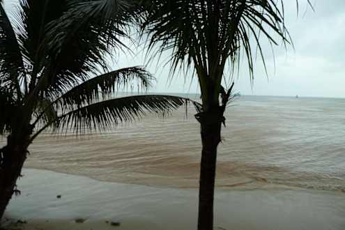 Strand nach Dauerregen und SturmflutDas Meer war eine braune Brühe, schwimmen war nicht möglich...