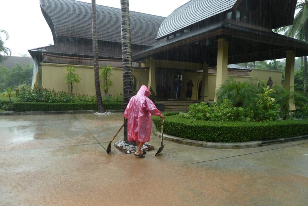 Hoteleingang bei Dauerregenalle Versuche der Thais dem Regen Herr zu werden waren hilflos