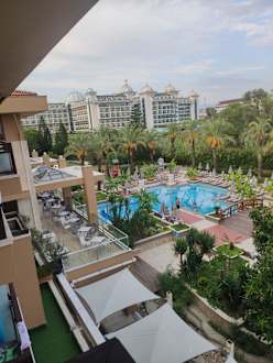 Zimmerausglick auf eine Poolanlage