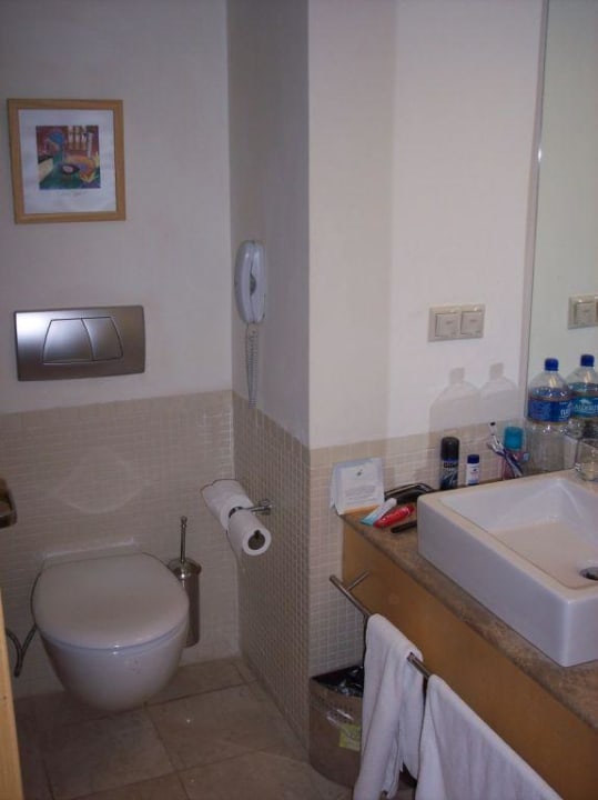Standard Room 3Hier das Bad. Leider konnte man den Dusch-Bereich hinter der Tür nicht fotografieren. Unter dem Waschtisch der Eimer für den "Organic Waste" (Biomüll). Praktisch: Wenn jemand nicht mehr vom WC herunter kommt kann er gleich nach Hilfe telefonieren! ;-))