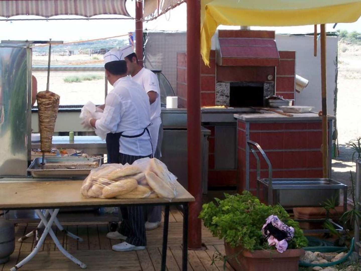 Beach Bar 2Mittags-Snacks an der Strandbar. Pizza (tägl.) und Kebab ab und zu. Im Hintergrund kleines Salatbuffet.