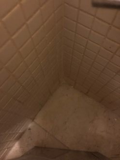 Boden neben der Toilette. Geputzt wurde da schon länger nicht mehr.
