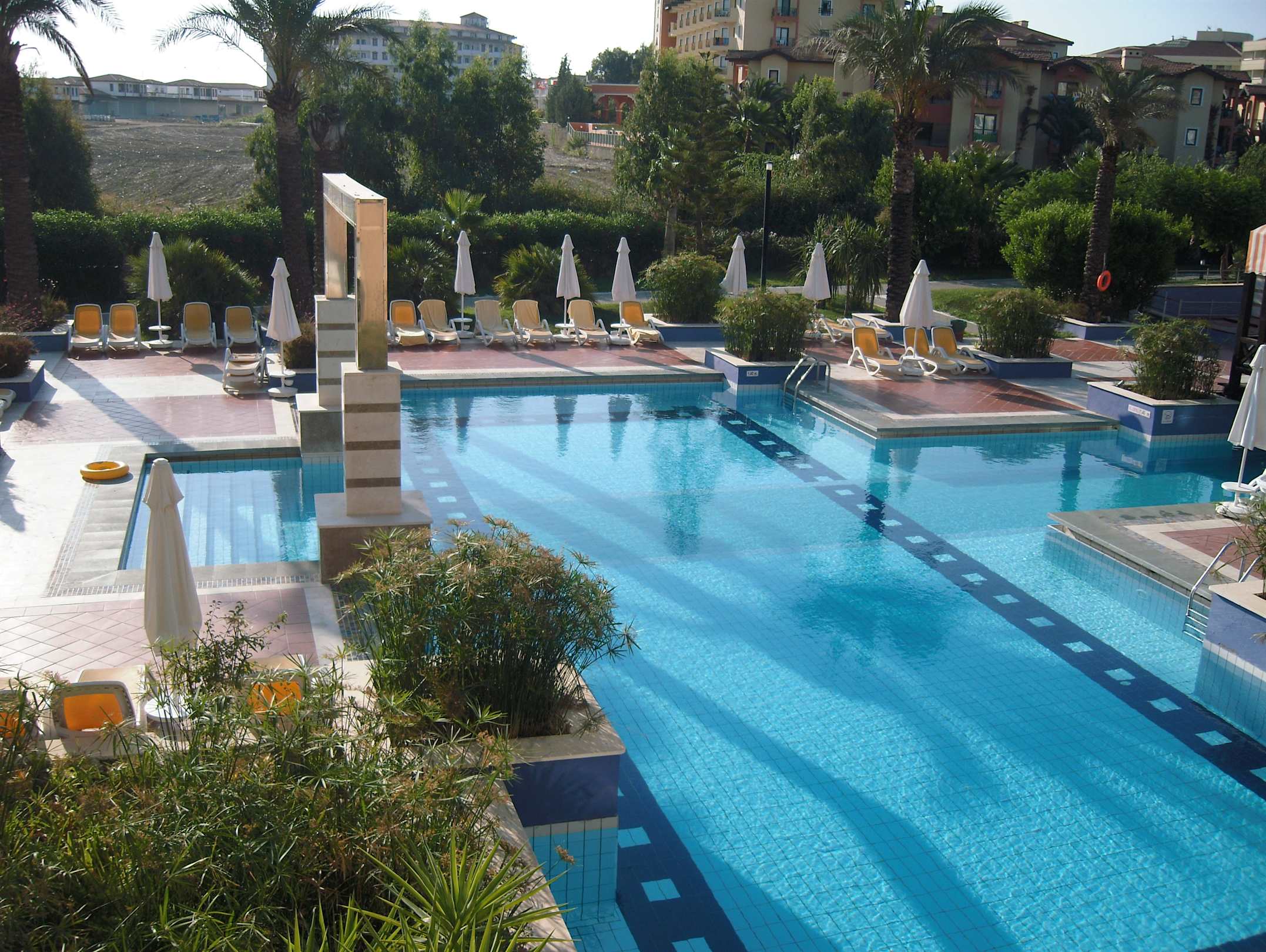 Aussicht vom Balkon auf den Pool