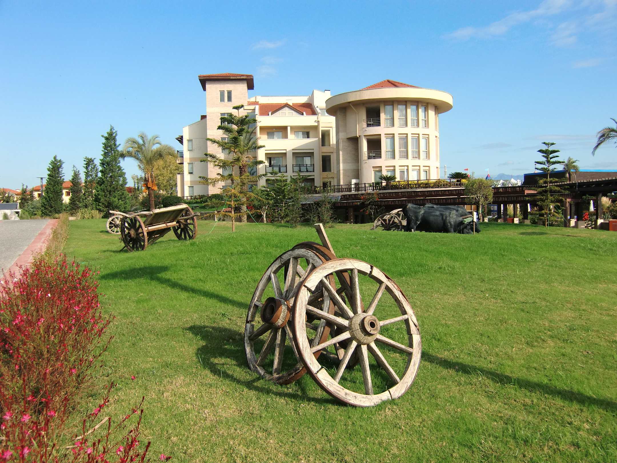 Im Garten ist viel Dekoration