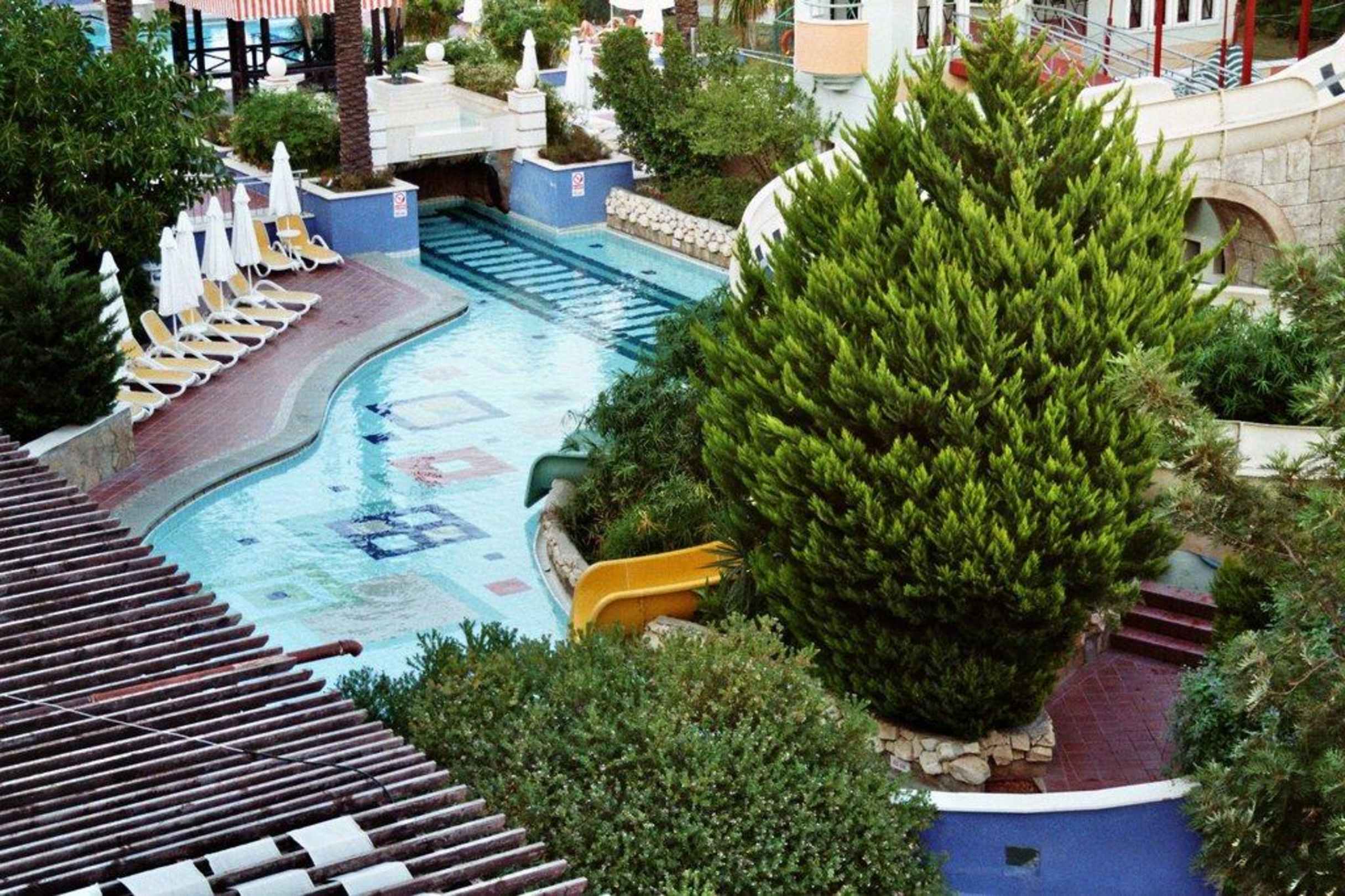 Kinderpool mit RutschenDer Kinderpool ist inmitten zweier Pools integriert (links und rechts) sodass ruhestörender Lärm ausgeschlossen ist.