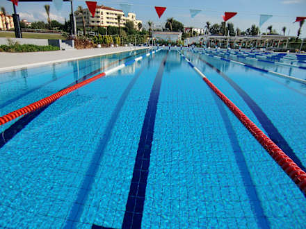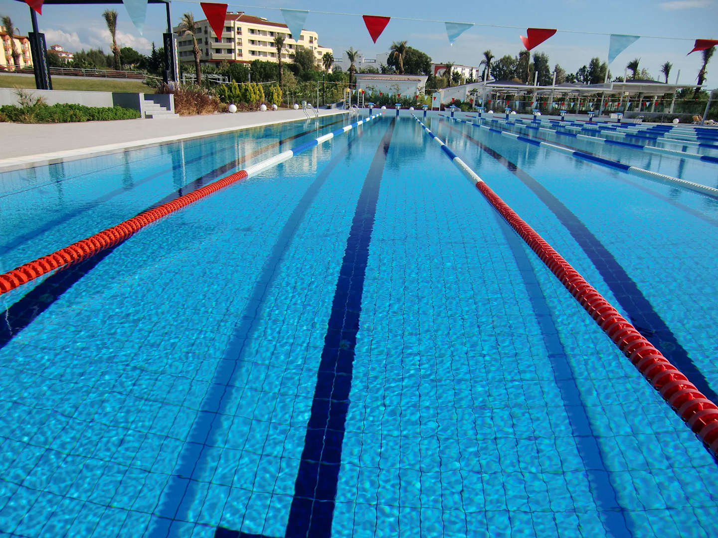 Der riesige OlympiapoolIm Dezember wird das Wasser aufgeheizt. Da kommen internationale Schwimmmannschaften zum Trainieren