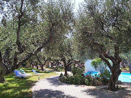 Gepflegte Anlage mit vielen Schattenplätzen unter Olivenbäumen