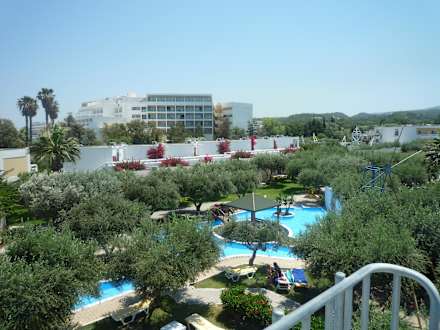 Ausblick von der Rutsche zur Hotelanlage