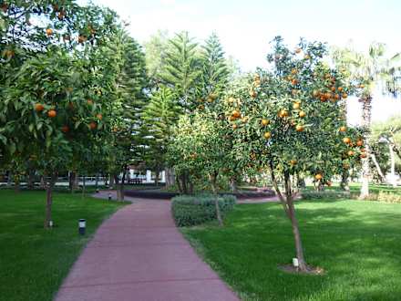 Ein ganzer Weg mit Orangenbäumen