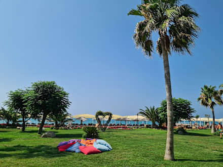 Rasenfläche zwischen Hauptrestaurant und Strand